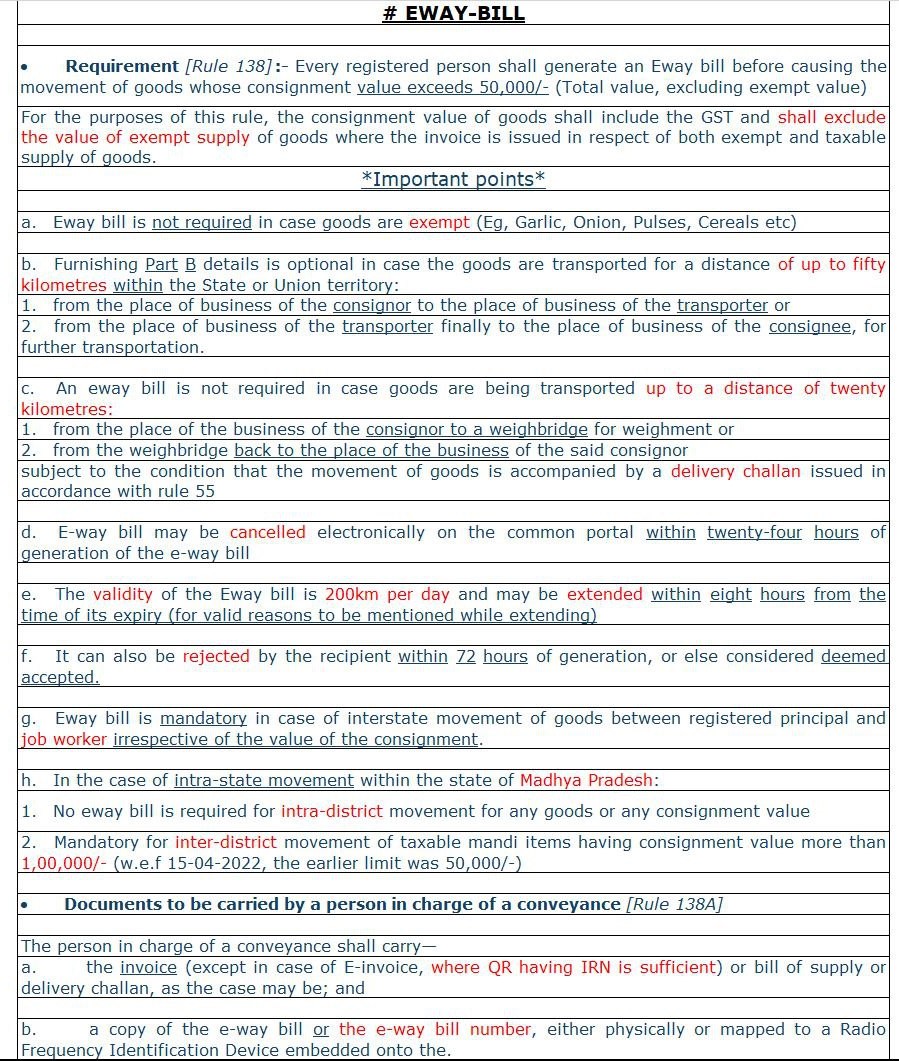- E-Way Bills are required documents to be carried by transporters of goods worth Rs. 50,000 and/or more when transporting such goods both inter- and intra-state.