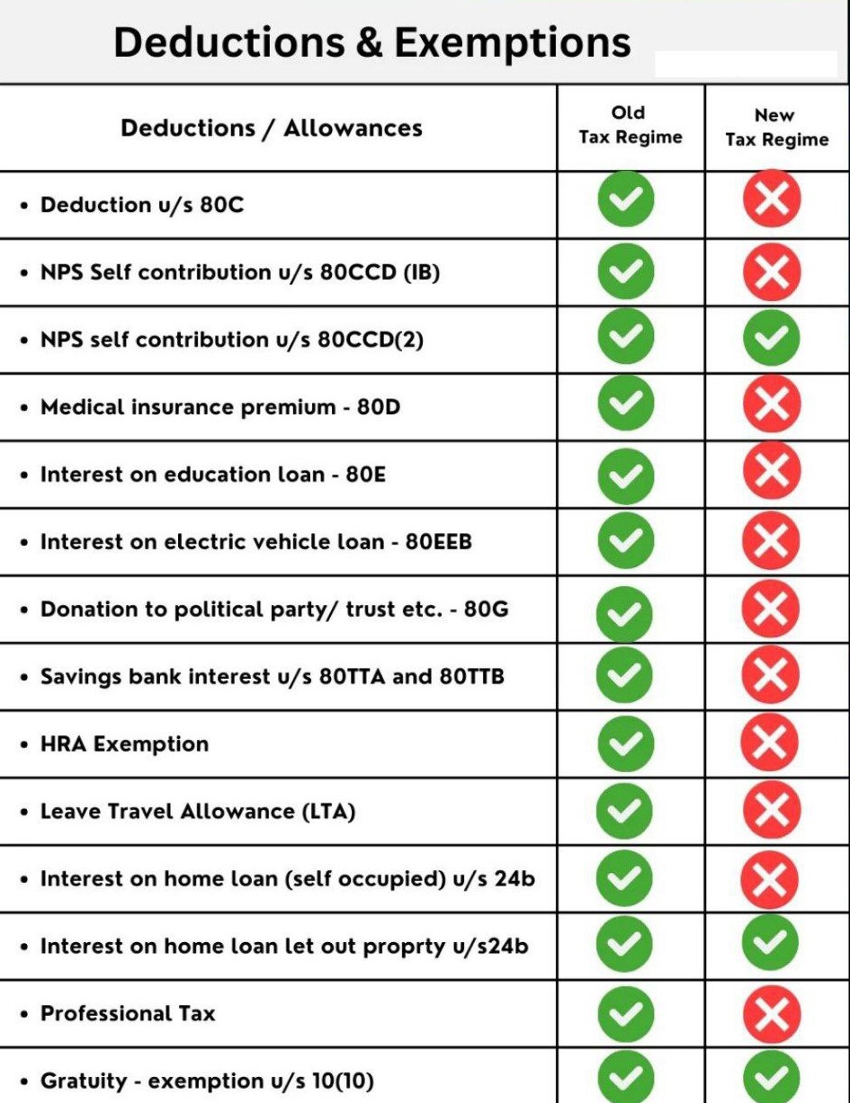 | Other Income Tax deductions under Chapter VI-A | ✓ | X | X |